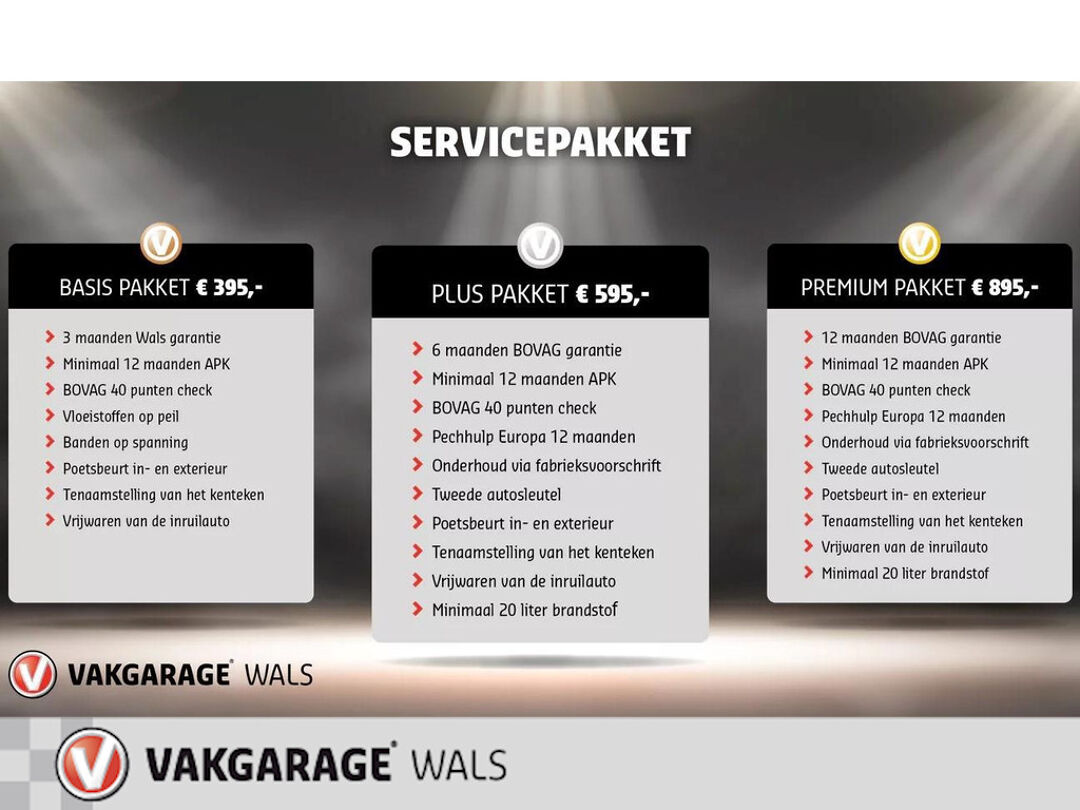 Dit afleverpakket bevat: BOVAG 40-Puntencheck; Geen BOVAG Afleverbeurt; Vakgarant (3 maanden); Alghele controle voertuig, APK, Poetsbeurt in- en exterieur, Tenaamstelling kenteken, Vloeistoffen op peil