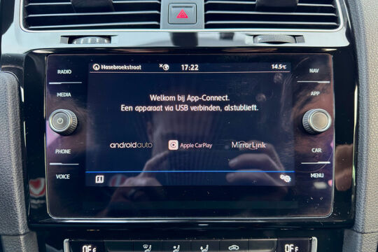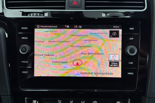 Ook van binnen is deze Golf modern en compleet uitgerust. Het digitale dashboard zorgt voor een strak en overzichtelijk interieur waarbij alle informatie duidelijk wordt weergegeven. Het navigatiesysteem brengt u eenvoudig naar iedere bestemming en via Apple CarPlay koppelt u moeiteloos uw smartphone om muziek, berichten en navigatie te gebruiken.